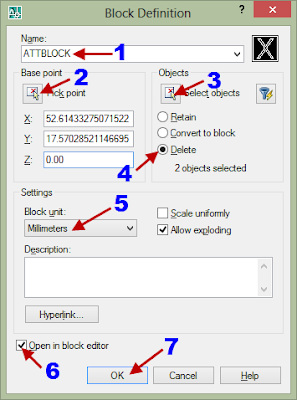 - เลือก Convert to block เมื่อต้องการให้วัตถุที่ถูกเลือกกลายสภาพเป็นบล็อคในทันทีหลังจากเสร็จสิ้นคำสั่ง หรือเลือก Retain เมื่อต้องการให้คงสภาพเดิม หรือเลือก Delete เมื่อต้องการวัตถุที่เลือกมาทำเป็นบล็อคทิ้ง